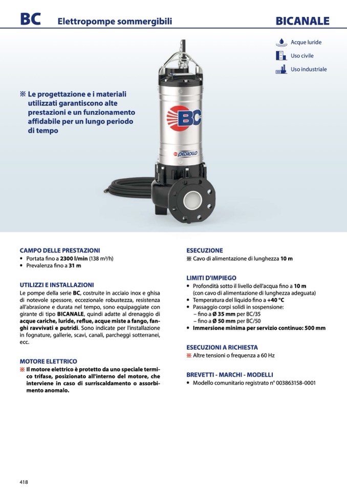 Le pompe della serie BC, costruite in acciaio inox e ghisa