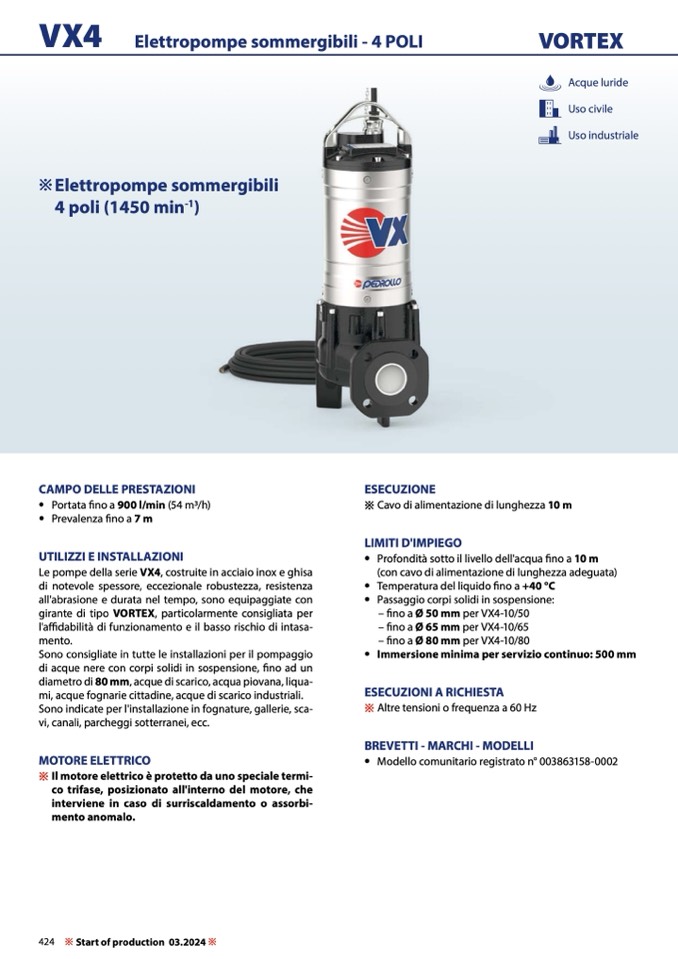 Le pompe della serie VX4, costruite in acciaio inox e ghisa