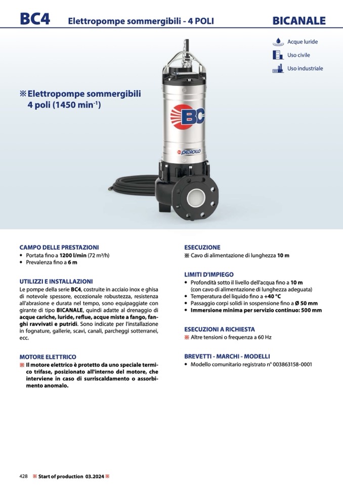 Le pompe della serie BC4, costruite in acciaio inox e ghisa