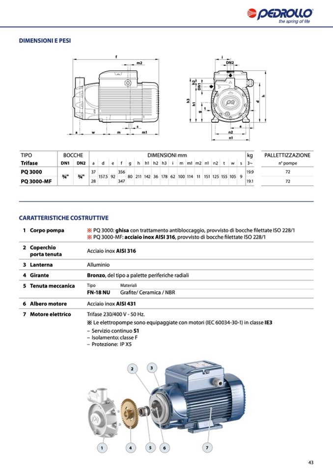 ※ PQ 3000-MF: acciaio inox AISI 316, provvisto di bocche filettate ISO 228/1
