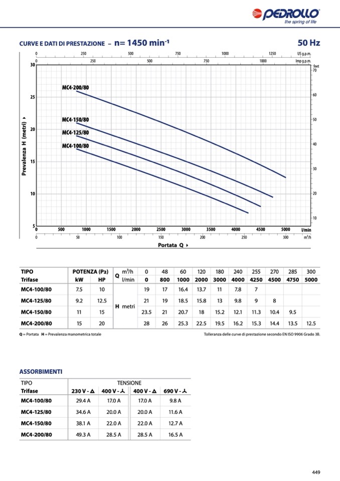 Tolleranza delle curve di prestazione secondo EN ISO 9906 Grado 3B.