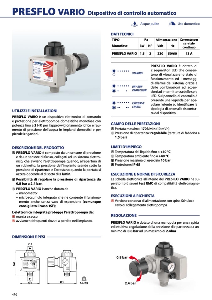 ※ Pressione di ripartenza: regolabile (taratura di fabbrica a