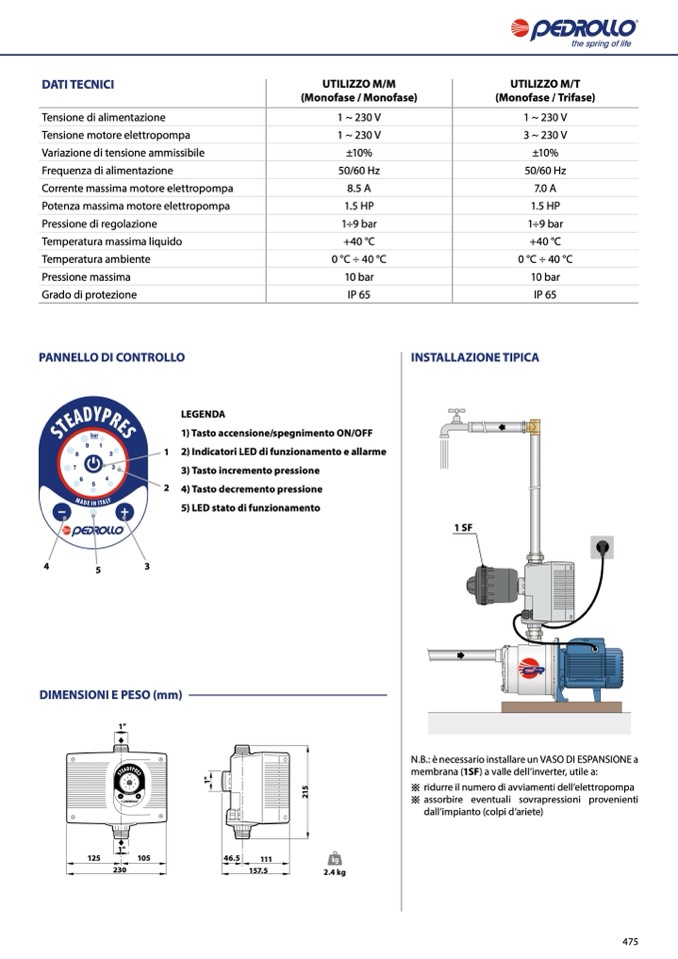 N.B.: è necessario installare un VASO DI ESPANSIONE a