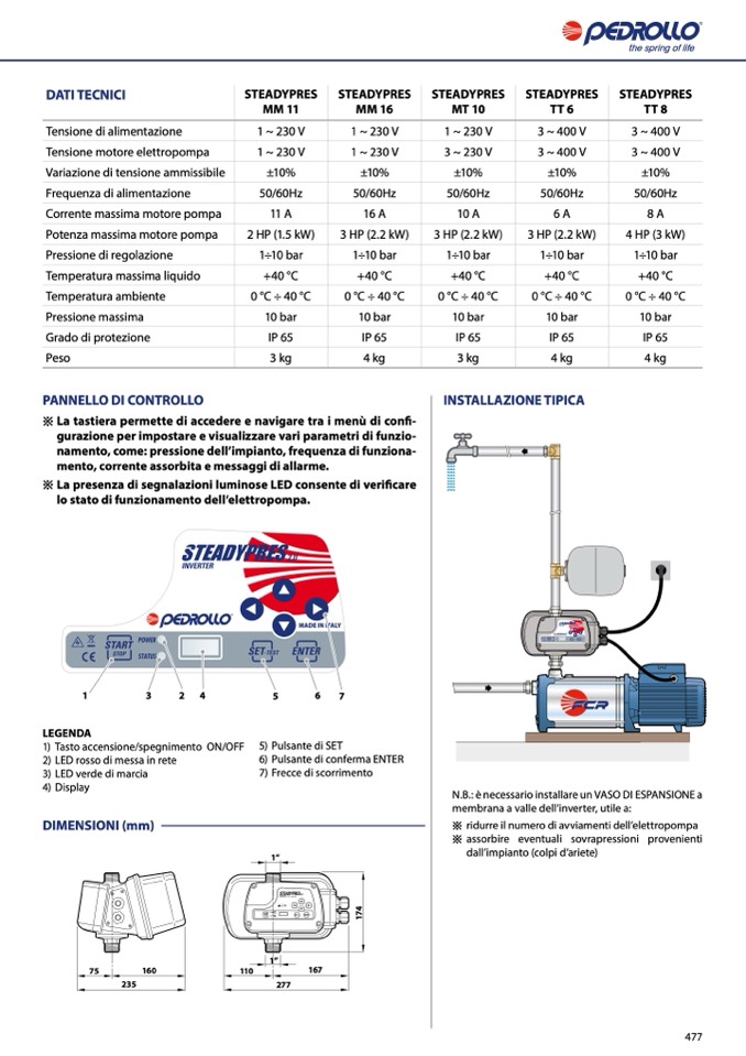 namento, come: pressione dell’impianto, frequenza di funziona-