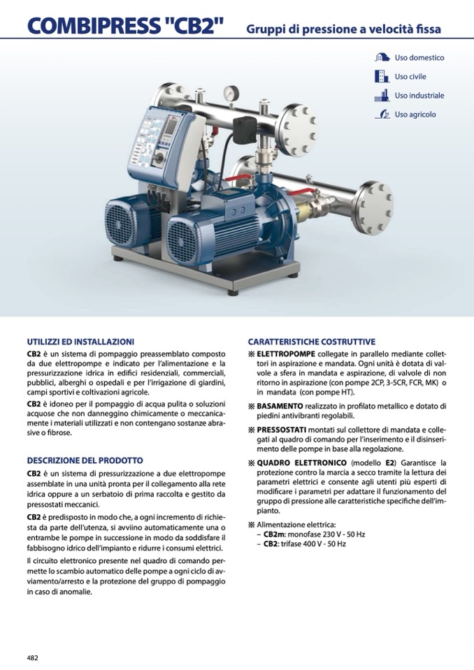 CB2 è un sistema di pressurizzazione a due elettropompe