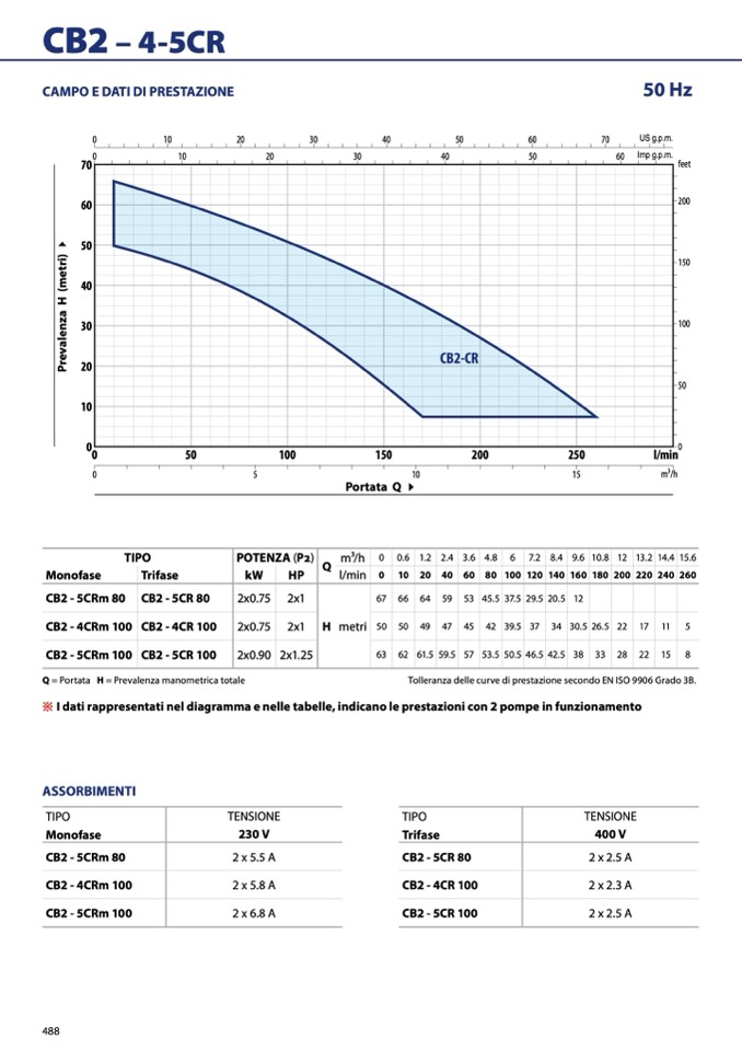 ※ I dati rappresentati nel diagramma e nelle tabelle, indicano le prestazioni con 2 pompe in funzionamento