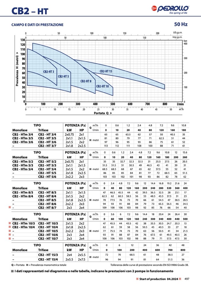Tolleranza delle curve di prestazione secondo EN ISO 9906 Grado 3B.