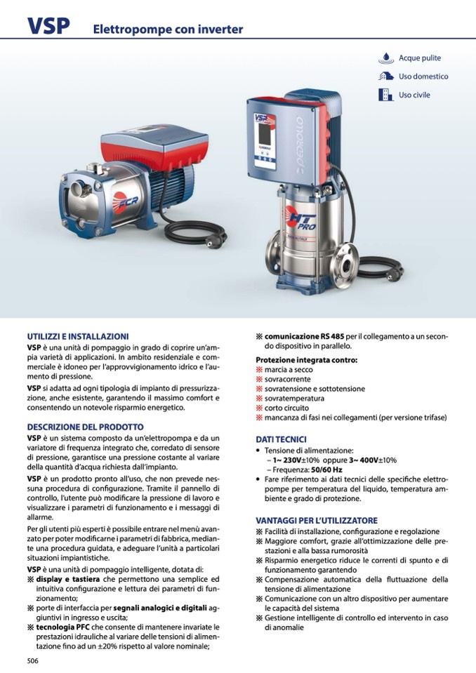 VSP è un sistema composto da un’elettropompa e da un