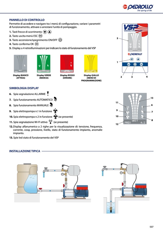 5. Display a 4 retroilluminazioni per indicare lo stato di funzionamento del VSP