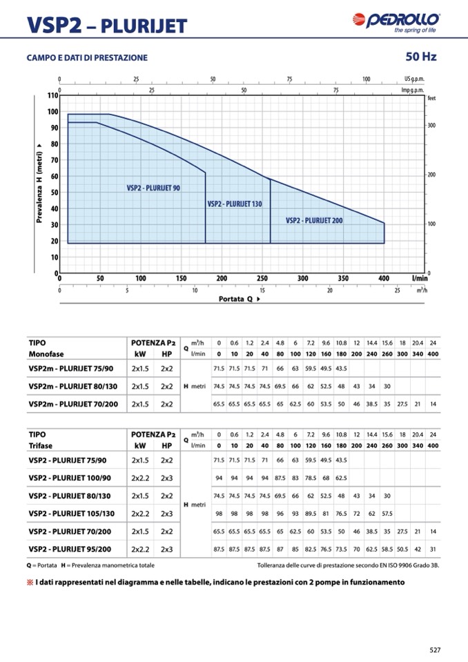 Tolleranza delle curve di prestazione secondo EN ISO 9906 Grado 3B.