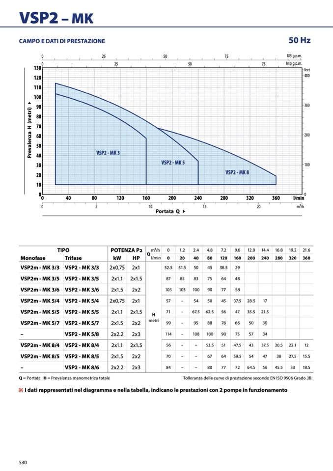 ※ I dati rappresentati nel diagramma e nella tabella, indicano le prestazioni con 2 pompe in funzionamento