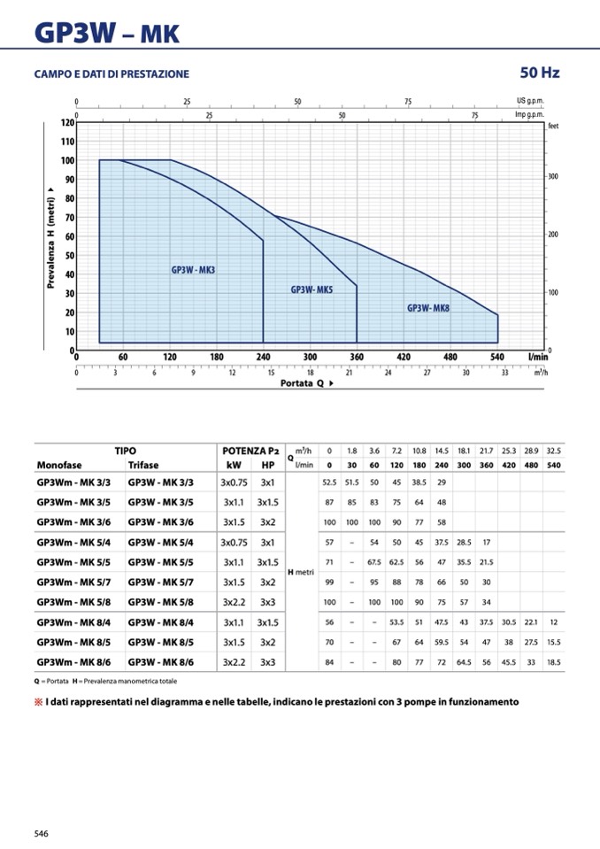 ※ I dati rappresentati nel diagramma e nelle tabelle, indicano le prestazioni con 3 pompe in funzionamento