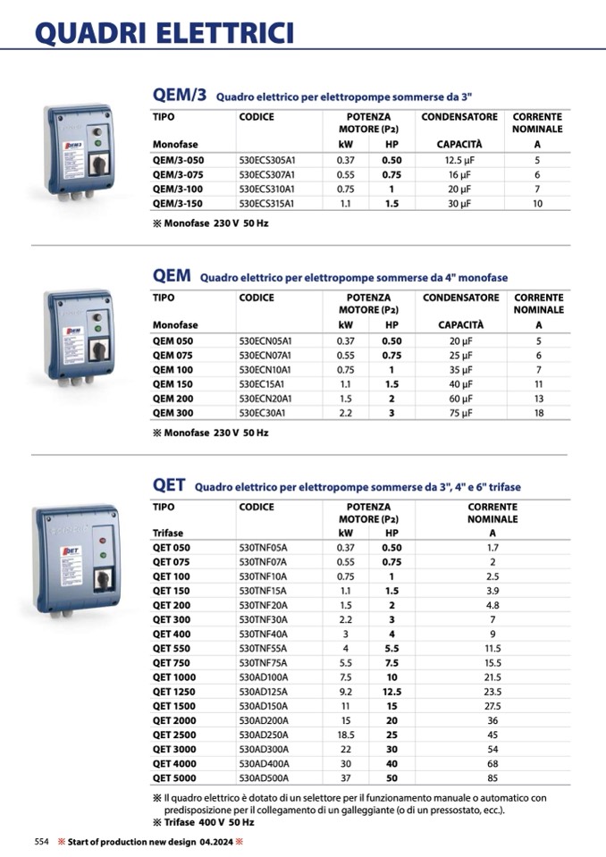 Quadro elettrico per elettropompe sommerse da 3", 4" e 6" trifase