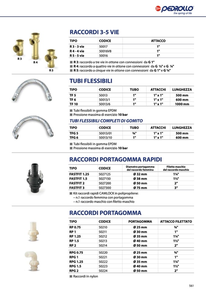 ※ Kit raccordi rapidi CAMLOCK in polipropilene: