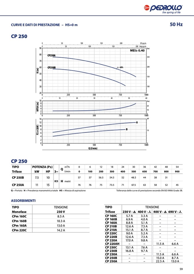 Q = Portata H = Prevalenza manometrica totale