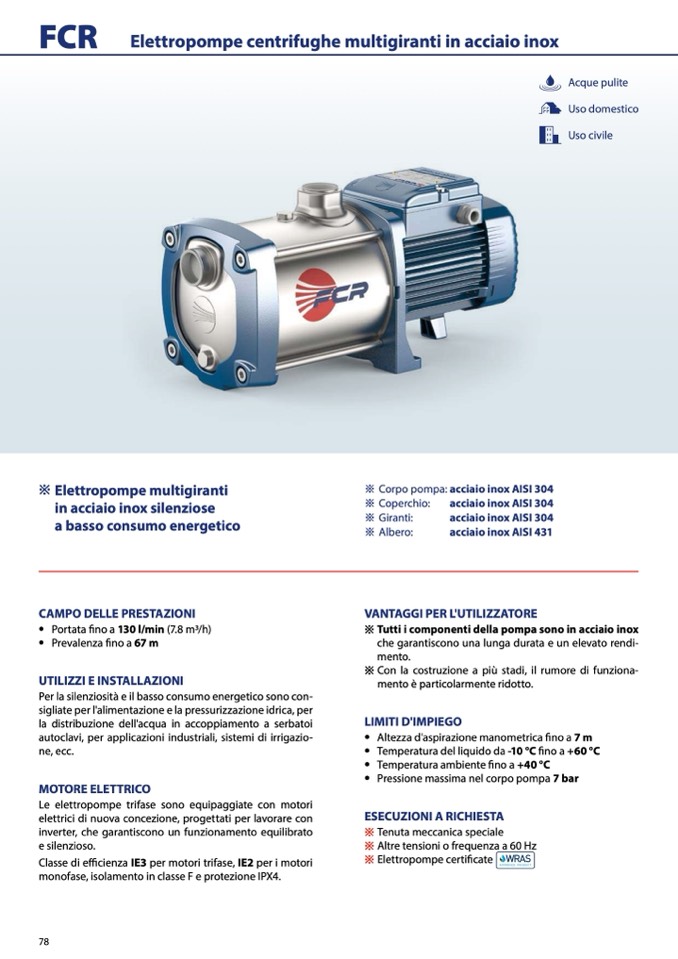 Elettropompe centrifughe multigiranti in acciaio inox
