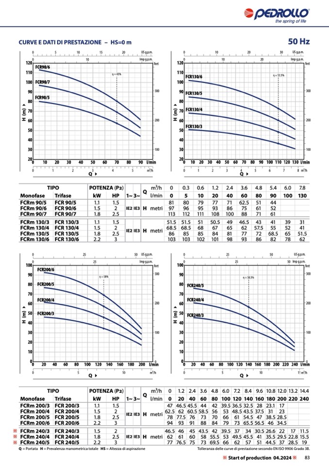 CURVE E DATI DI PRESTAZIONE – HS=0 m