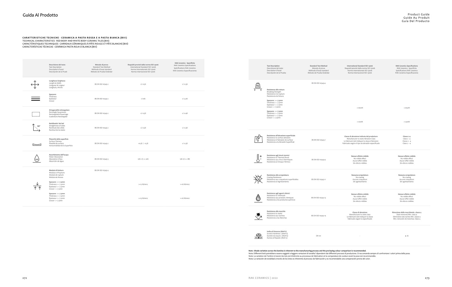 CARATTERISTICHE TECNICHE - CERAMICA A PASTA ROSSA E A PASTA BIANCA (BIII)