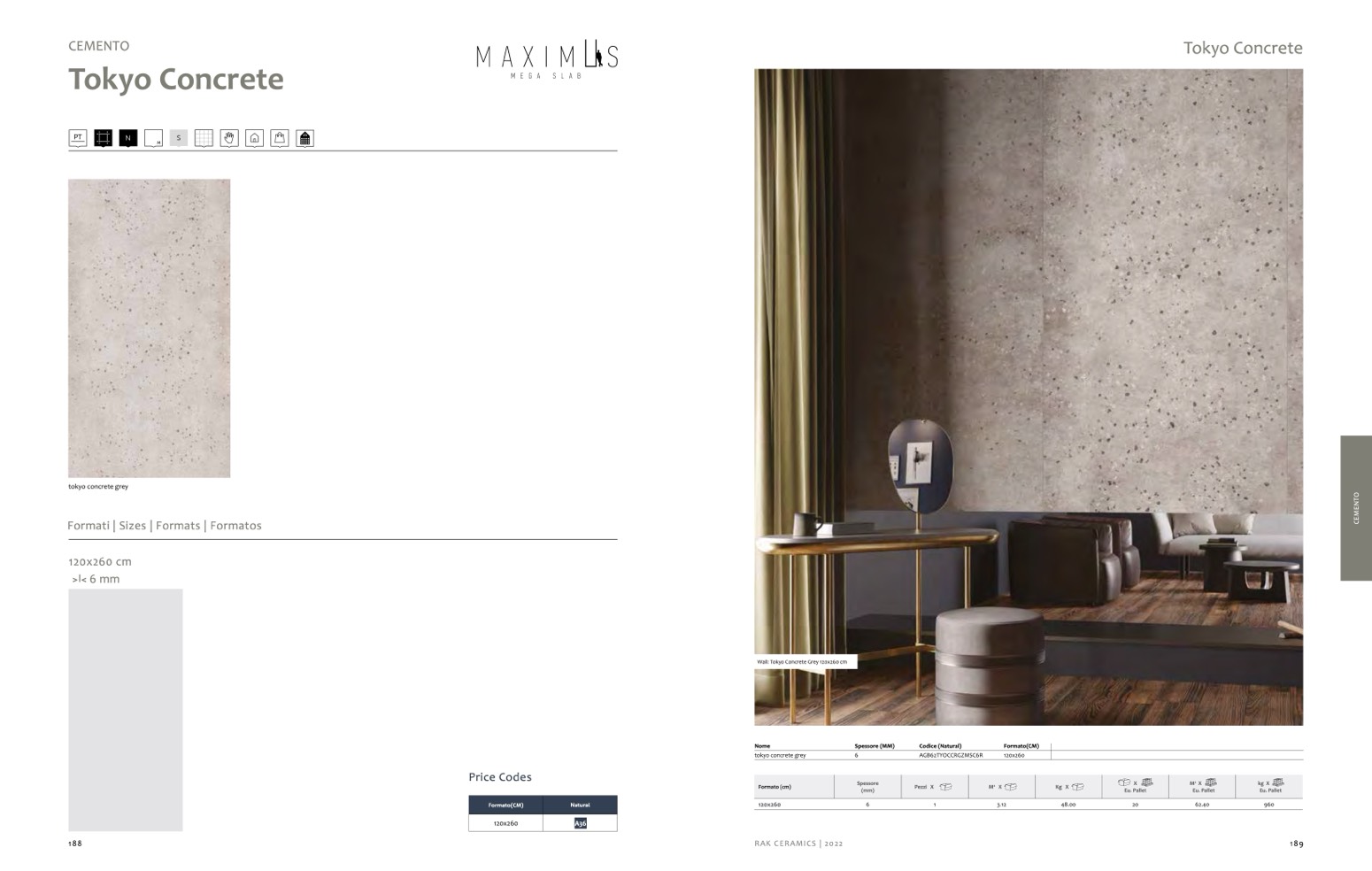 Wall: Tokyo Concrete Grey 120x260 cm