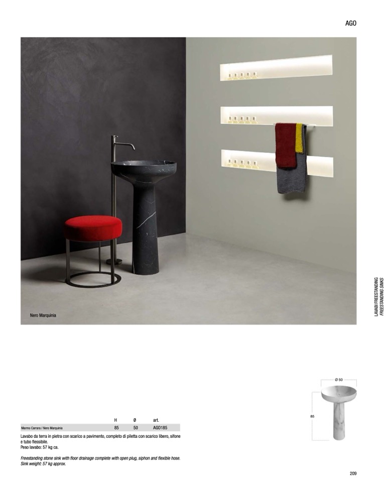 Peso lavabo: 57 kg ca.