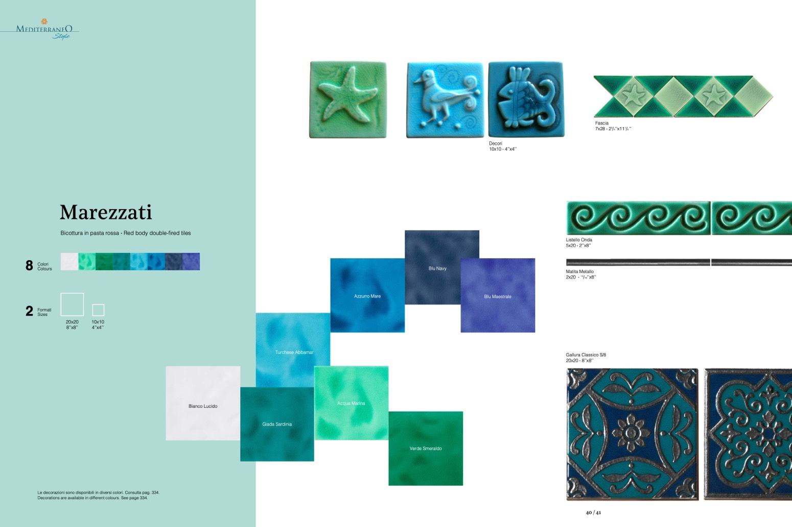 Le decorazioni sono disponibili in diversi colori. Consulta pag. 334.