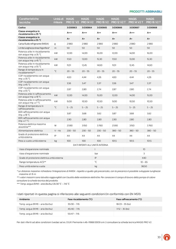 Per dati riferiti ad altre condizioni (vedasi ad es. D.G.R. Piemonte n.46-11968/2009 s.m.i.) consultare la scheda tecnica MAGIS PRO V2.