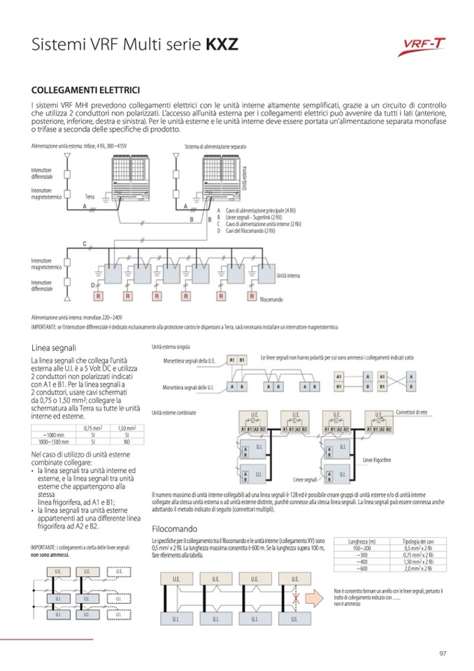 Le specifiche per il collegamento tra il filocomando e le unità interne (collegamento XY) sono