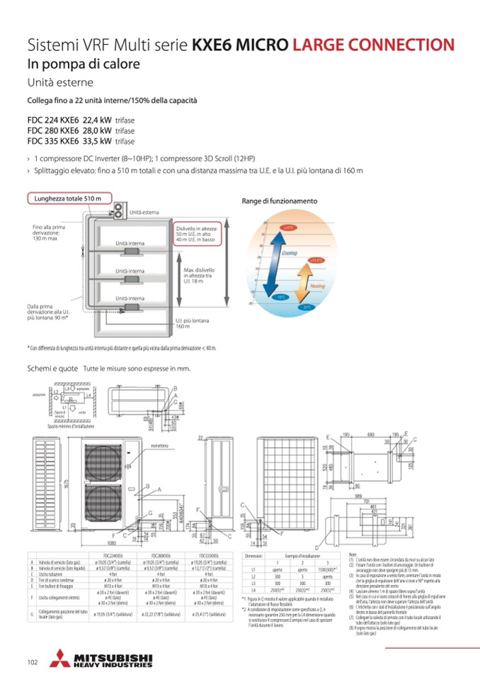 * Con differenza di lunghezza tra unità interna più distante e quella più vicina dalla prima derivazione < 40 m.