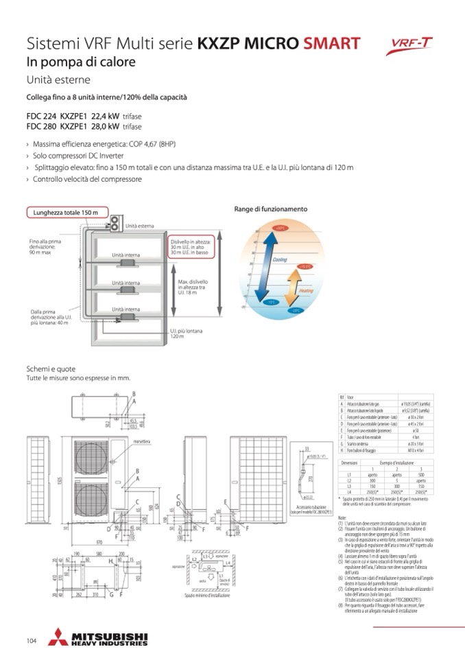 (4) Lasciare almeno 1 m di spazio libero sopra l’unità