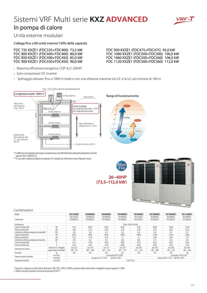 * Quando si collegano le unità interne della serie: FDK, FDFL, FDFU o FDFW, la potenza delle unità interne collegabili non può superare il 130%.