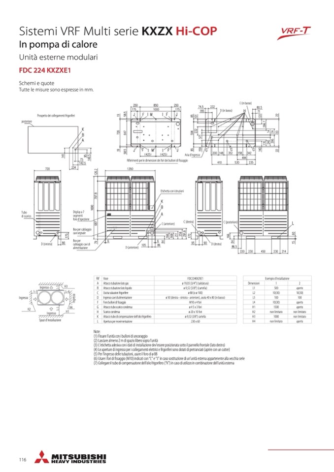 (6) Usare i fori di fissaggio (M10) indicati con “L” e “J” in caso sostituzione di un’unità esterna appartenente alla vecchia serie
