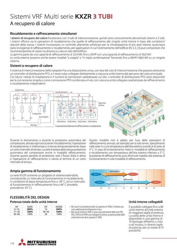 I sistemi offrono sia le operazioni di riscaldamento che quelle di raffrescamento alle singole unità interne in base alle condizioni/