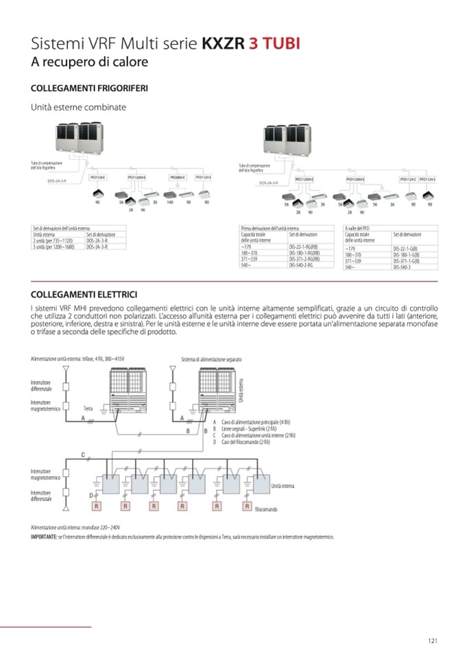 posteriore, inferiore, destra e sinistra). Per le unità esterne e le unità interne deve essere portata un’alimentazione separata monofase