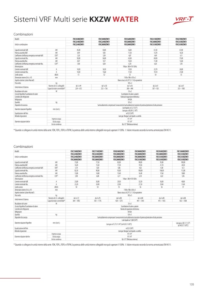 * Quando si collegano le unità interne della serie: FDK, FDFL, FDFU o FDFW, la potenza delle unità interne collegabili non può superare il 130%. 1. Valore misurato secondo la norma armonizzata EN14511.