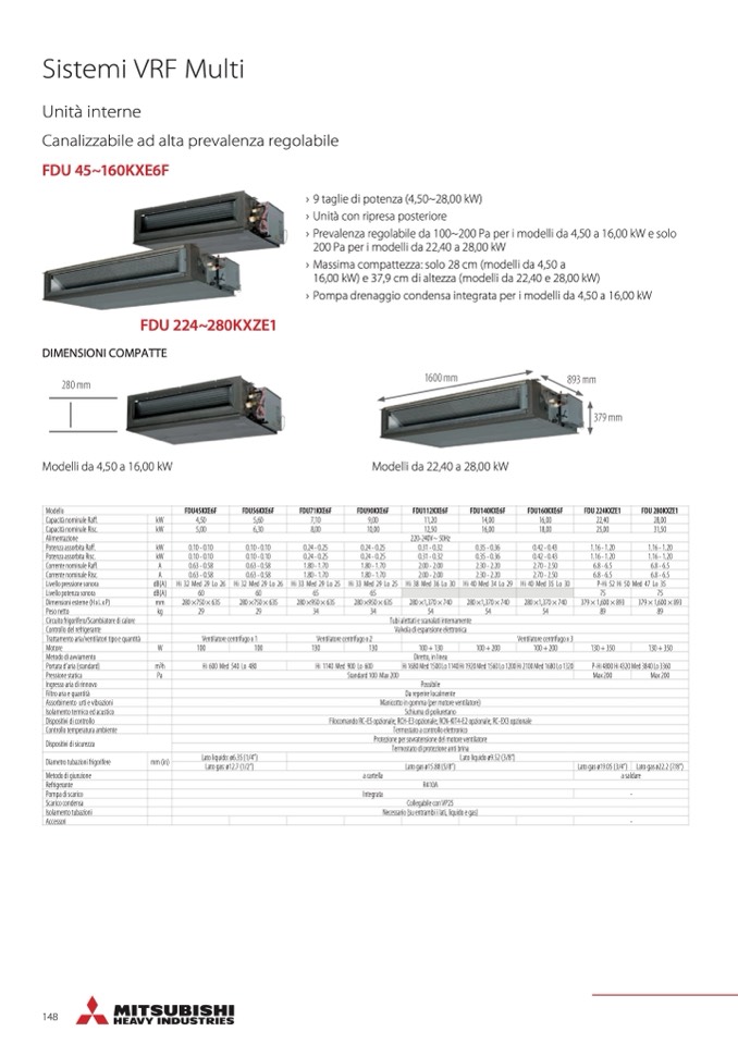 › Prevalenza regolabile da 100~200 Pa per i modelli da 4,50 a 16,00 kW e solo