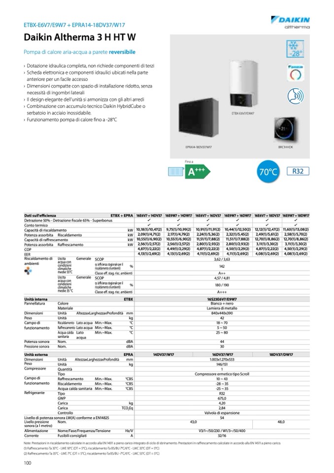 (2) Raffrescamento Ta 35°C - LWE 7°C (DT = 5°C); riscaldamento Ta BS/BU -7°C/6°C - LWC 55°C (DT = 5°C)