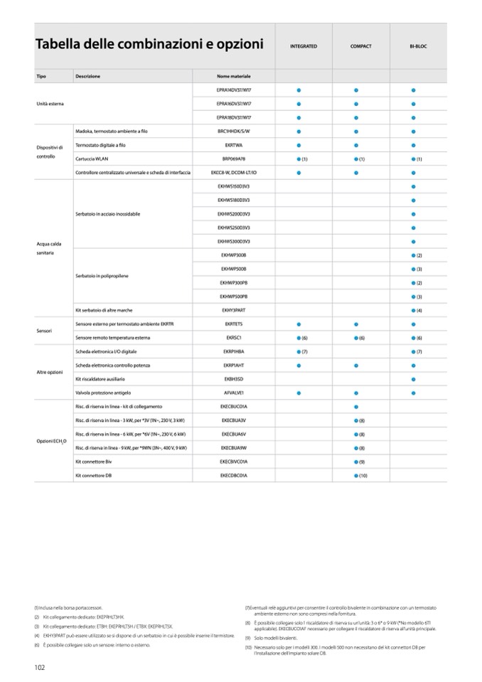 (4) EKHY3PART può essere utilizzato se si dispone di un serbatoio in cui è possibile inserire il termistore.