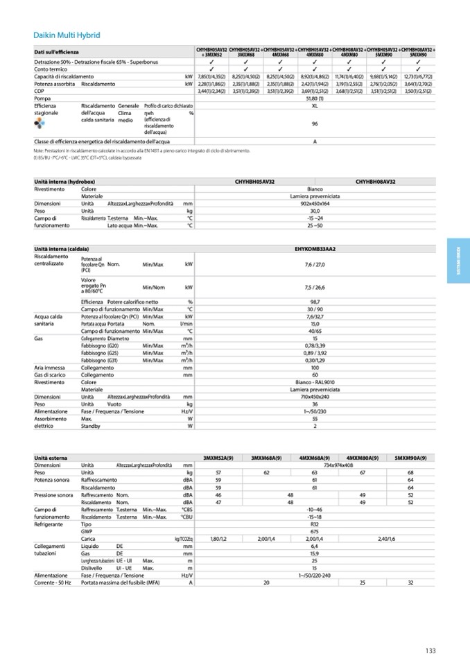 Note: Prestazioni in riscaldamento calcolate in accordo alla EN 14511 a pieno carico integrato di ciclo di sbrinamento.