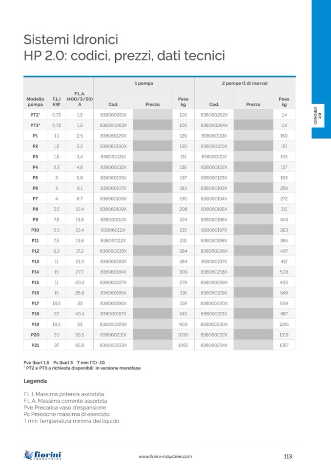 * PT2 e PT3 a richiesta disponibili in versione monofase