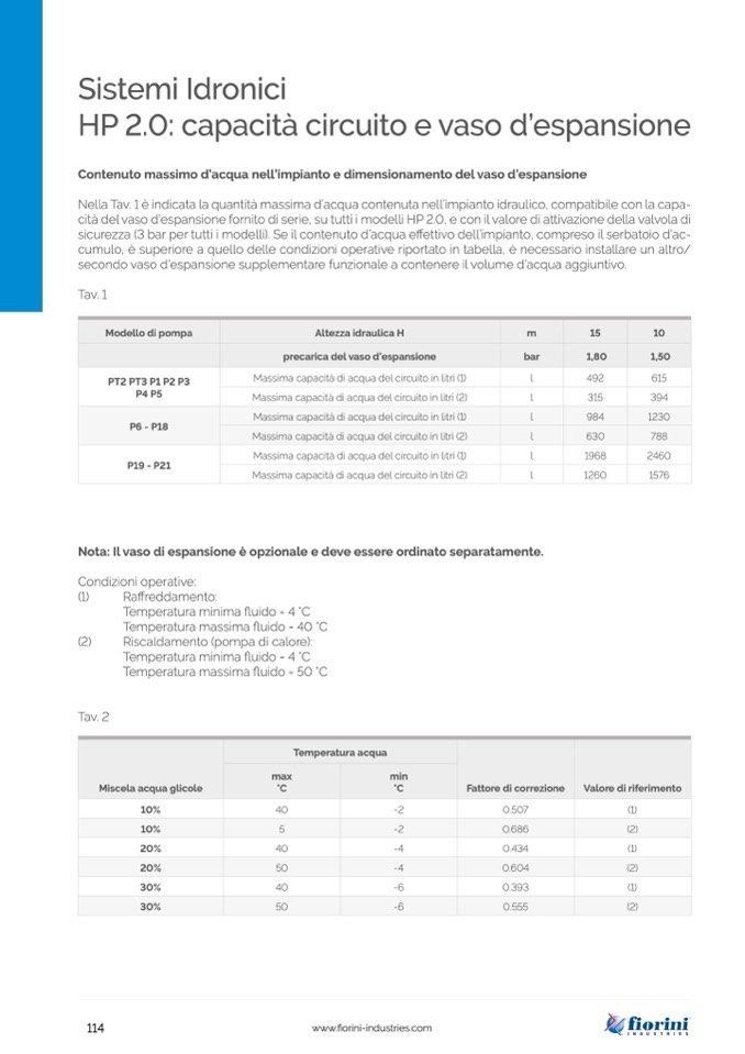 cità del vaso d’espansione fornito di serie, su tutti i modelli HP 2.0, e con il valore di attivazione della valvola di