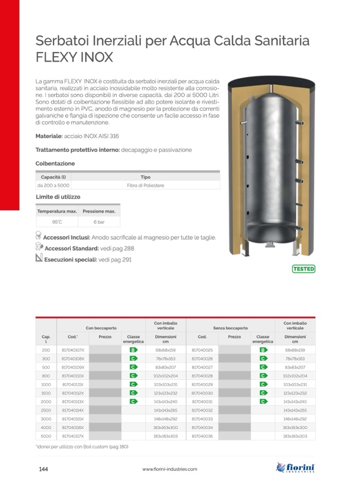 La gamma FLEXY INOX è costituita da serbatoi inerziali per acqua calda