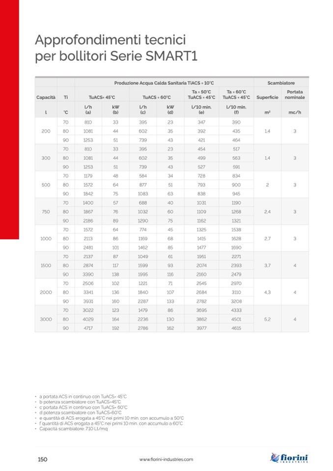 • f quantità di ACS erogata a 45°C nei primi 10 min. con accumulo a 60°C