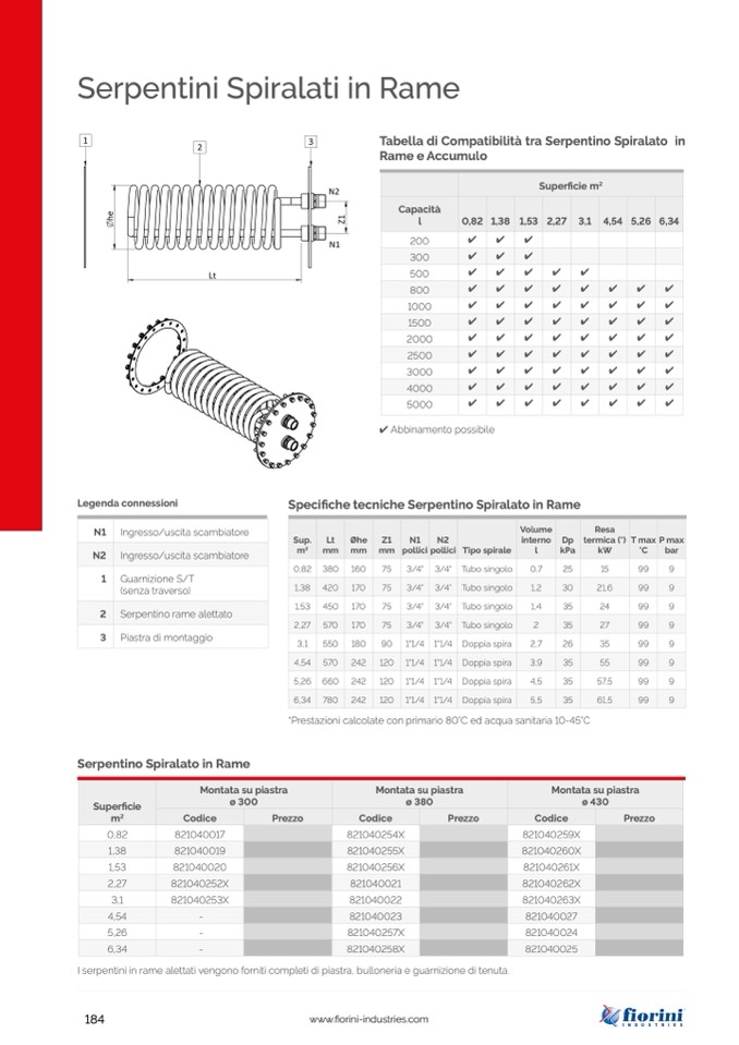 I serpentini in rame alettati vengono forniti completi di piastra, bulloneria e guarnizione di tenuta.