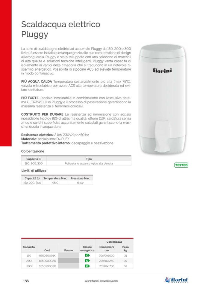 La serie di scaldabagno elettrici ad accumulo Pluggy da 150, 200 e 300