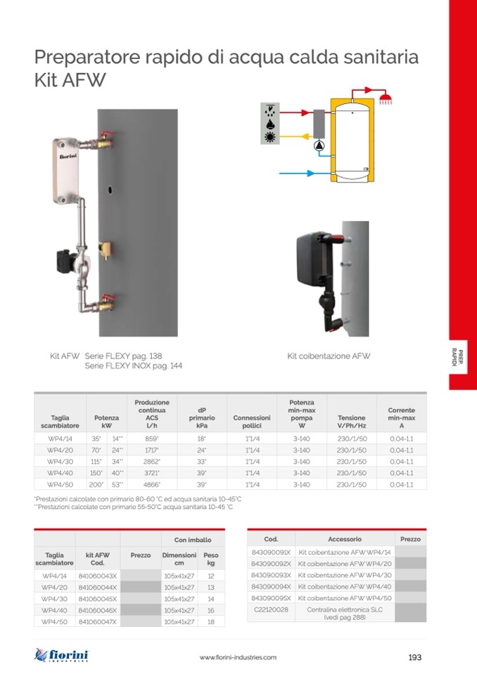 *Prestazioni calcolate con primario 80-60 °C ed acqua sanitaria 10-45°C