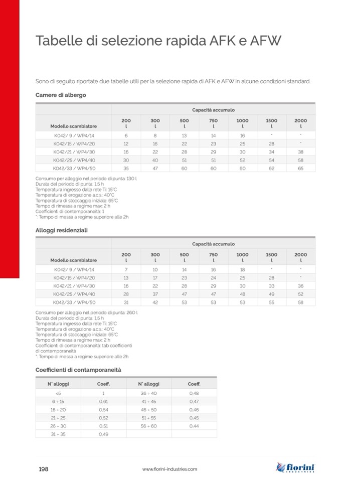 Sono di seguito riportate due tabelle utili per la selezione rapida di AFK e AFW in alcune condizioni standard.