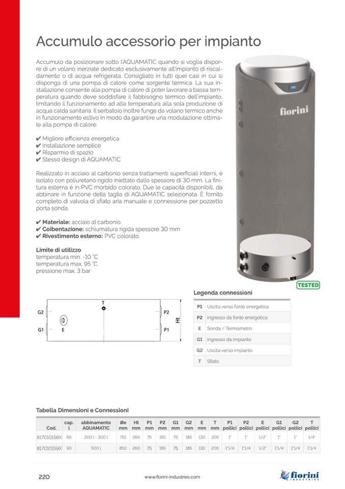 Tabella Dimensioni e Connessioni