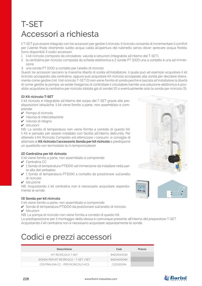 1. il kit ricircolo composto da circolatore, valvole e istruzioni (integrabile all’interno del T-SET),