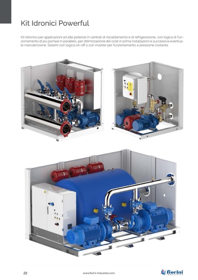 Kit Idronico per applicazioni ad alte potenze in centrali di riscaldamento e di refrigerazione, con logica di fun-