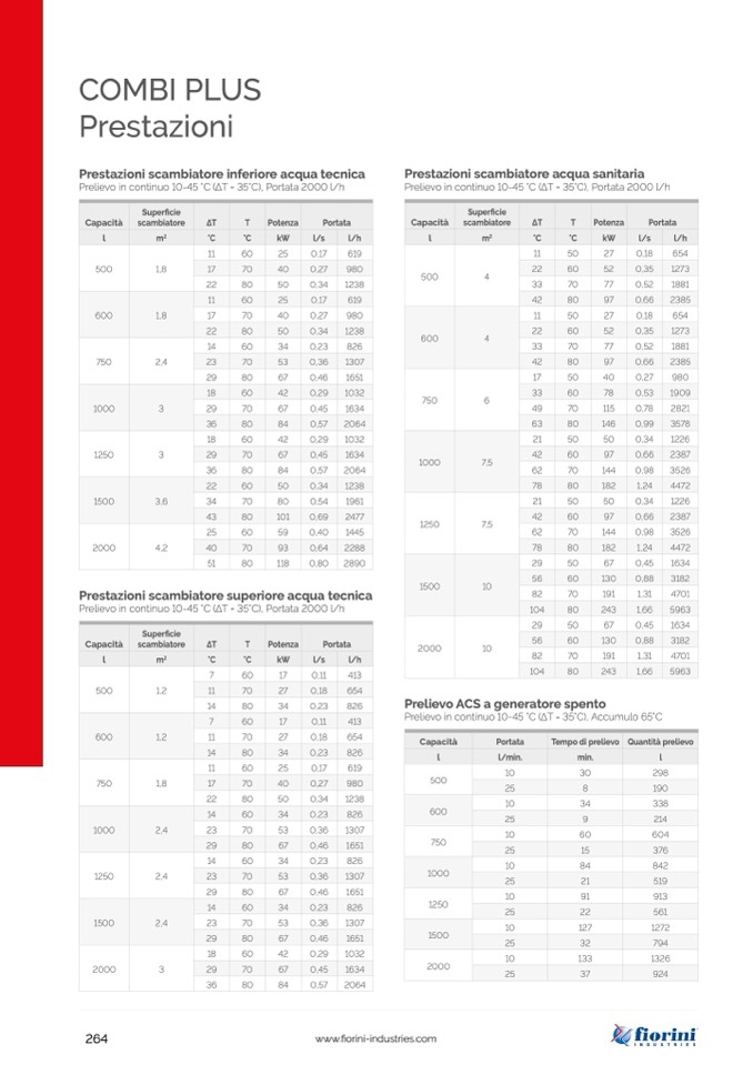 Prestazioni scambiatore superiore acqua tecnica